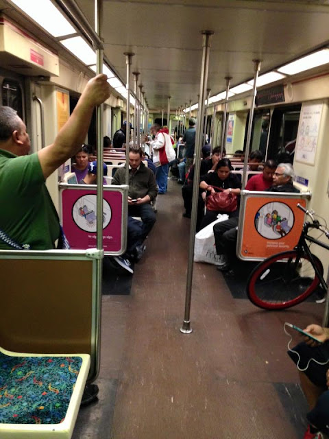 We were tired from walking nearly 9 miles so we headed for the hacienda and Yeya's for dinner. We took the subway to Mariachi Plaza where our AirBNB was and walked over to Yela's. We ordered Chicken Mole with beans and rice and made to order corn tortillas and I had Carnitas (tender short ribs) with beans & rice & spicy salsa. We explained that we wanted something to take on the train with us but didn't want anything that might spoil of get soggy during our travels. Mama said Burritos were the best traveling food and she would make us a couple especial burritos to go. They ended up weighing about 2 pounds each! We thanked her and went home to the AirBNB. We settled in but it wasn't long before we were asleep because of all the walking and food.